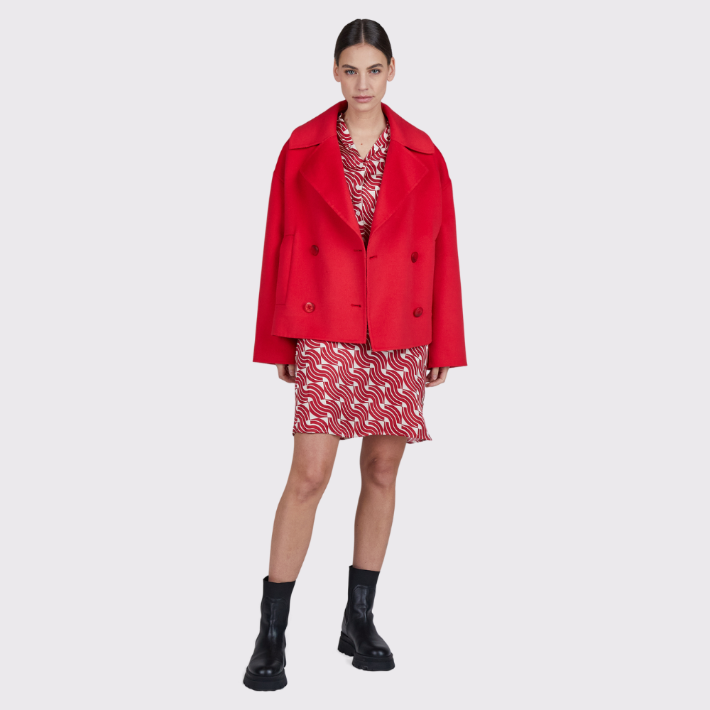 Elevate your wardrobe with Marc Aurel's Double Face Jacket. Crafted from a soft wool blend, this boxy-cut jacket boasts both comfort and style. Featuring a lapel collar and welt pockets, it's the perfect blend of premium quality and modern design. Genuine craftsmanship at its best.
