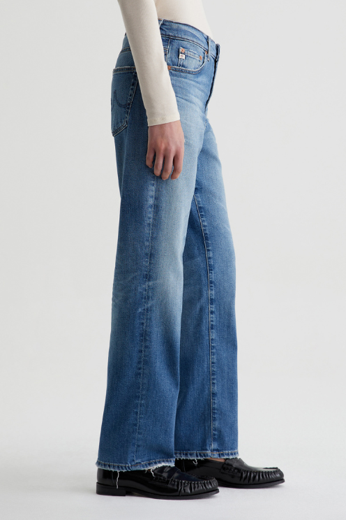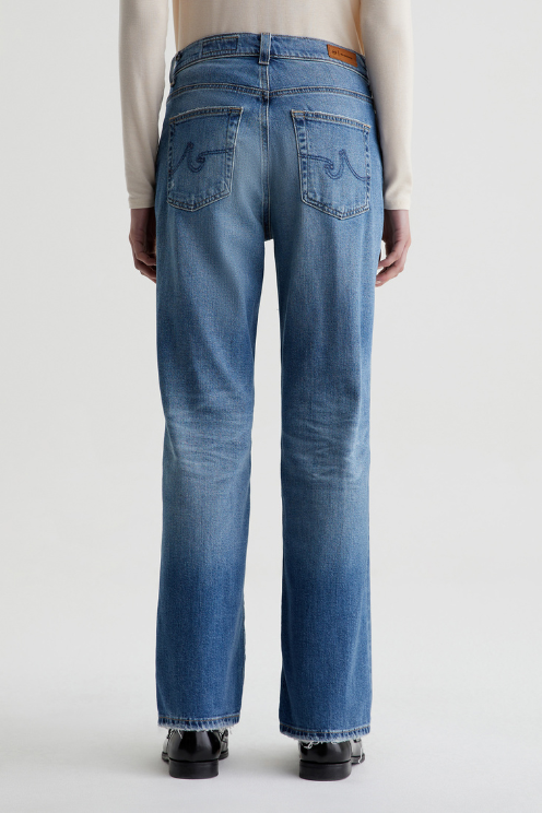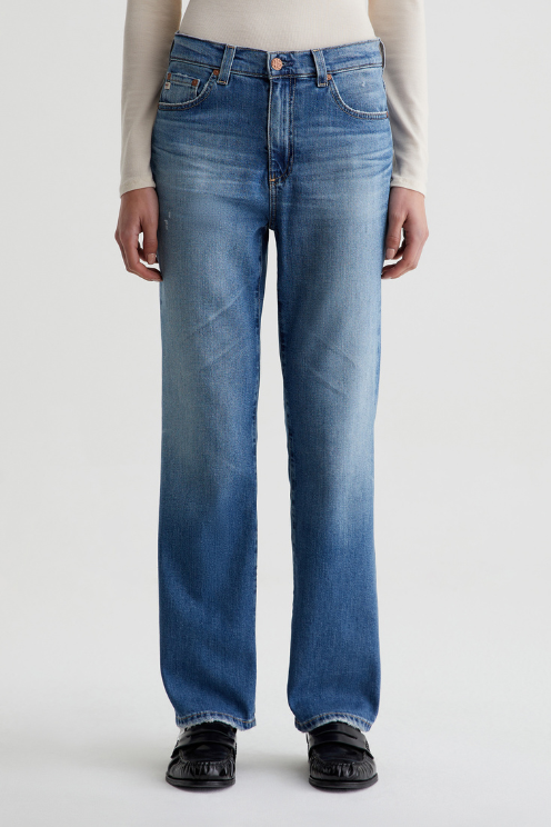 These jeans feature a mid-rise waist and a classic straight-leg silhouette with raw, ankle-baring hems. Crafted from Vintage Comfort Stretch Denim imported from Italy, they promise both style and comfort. The custom-designed medium indigo AG-ed™ wash adds a lived-in feel with natural-looking fades, edge wear, and a touch of distressing on one hip pocket. Perfect for adding a playful edge to your everyday look!