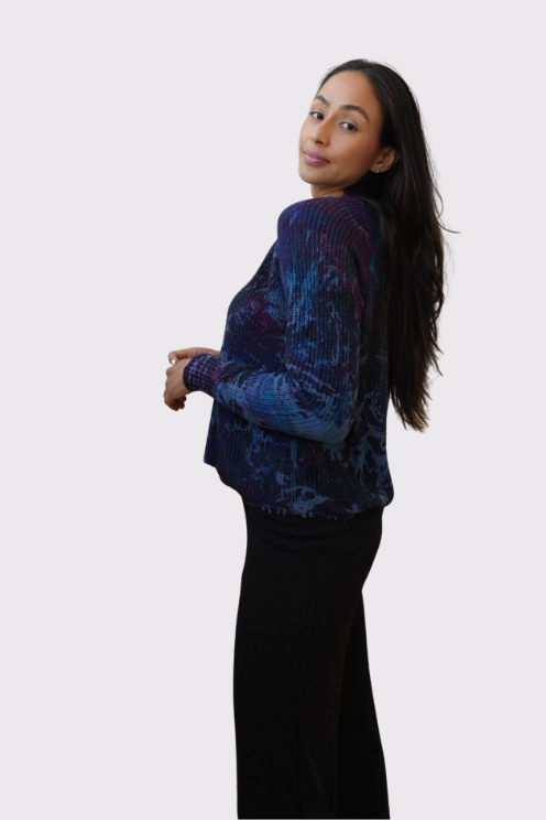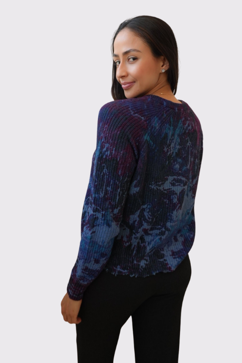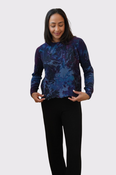 The Splatter Scallop Shaker combines a trendy shaker style with distressed edges and dynamic ink shade splatters for a bold, edgy look. Crafted from soft cotton, it offers both comfort and style, making it a standout choice for those who want to express their unique fashion sense effortlessly.