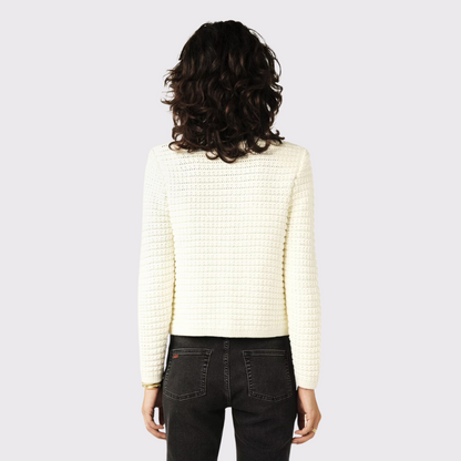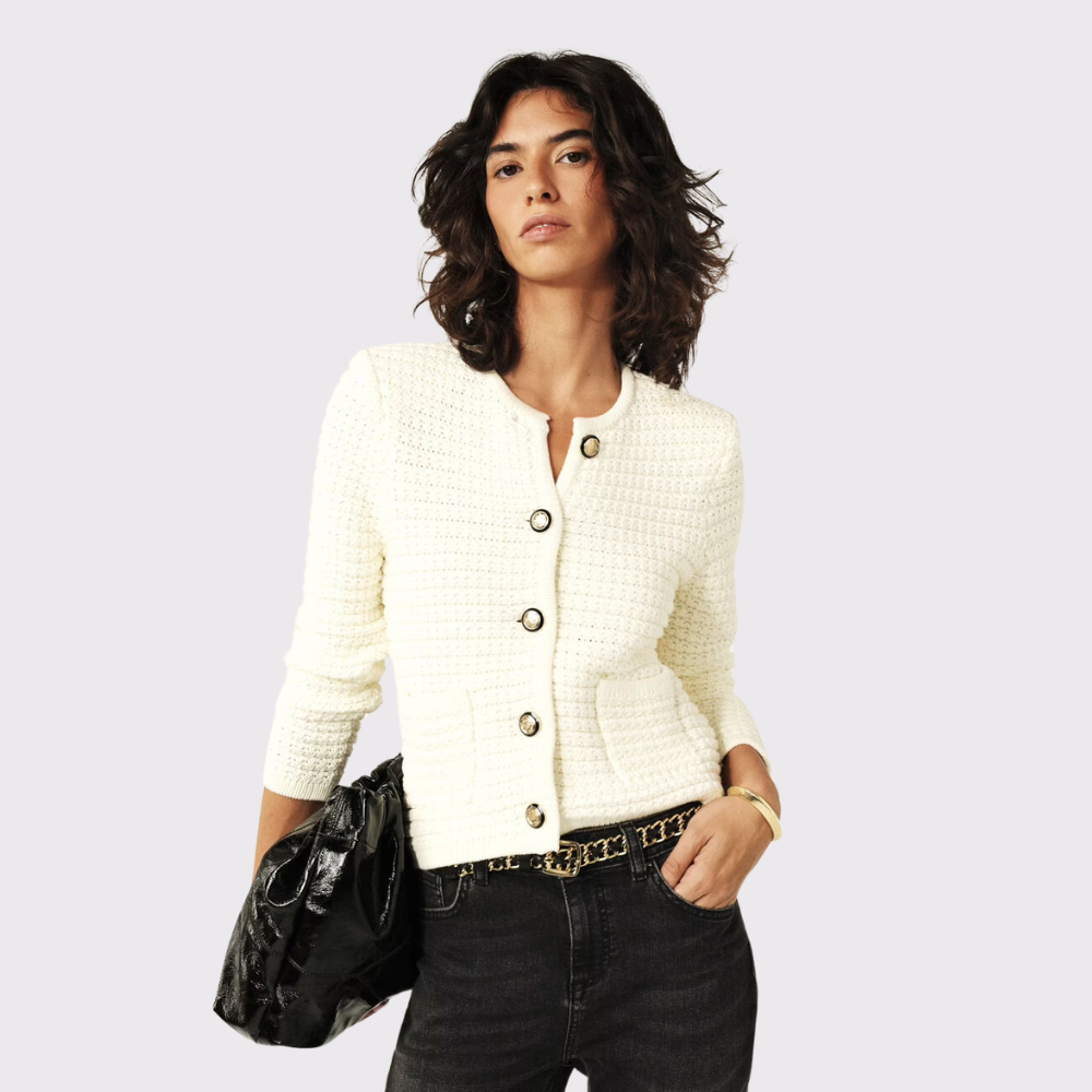 The GASPARD cardigan can be worn like a jacket. It has a round collar and long sleeves that reveal the wrists. As well as a cropped cut, it has an eye-catching textured ottoman stitch for a tweed effect. It fastens with black and gold-tone buttons, and the killer detail is that it has pockets! Wear it with casual or smart outfits it'll always be perfect!