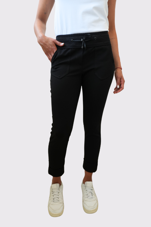 Elevated comfort with a fashion-forward twist. These Beate Heymann joggers are crafted from a soft stretch jersey with a clean, tailored silhouette. Featuring a wide drawstring waistband, angled front patch pockets, back patch pockets, and cuffed hems, they offer a sporty-yet-sleek look that transitions effortlessly from casual to polished.