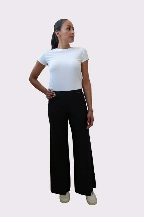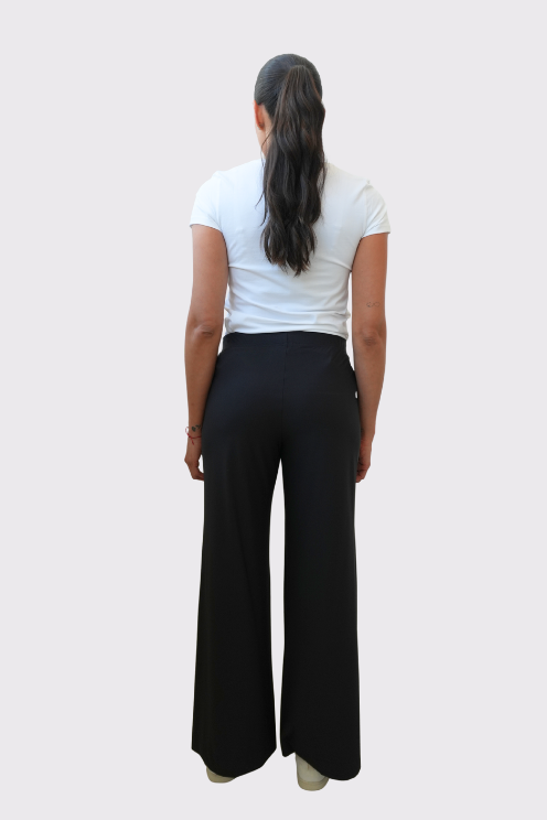 Clean, fluid, and endlessly wearable. This wide-leg pant from Beate Heymann is designed in a silky, feather-light jersey with an easy pull-on waistband and a flattering drape. The sleek silhouette is elevated by minimal seaming and a subtle logo detail at the hip, making it the perfect go-to for travel, lounging, or city strolls.