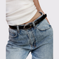 SIZE MEDIUM: 34 inches total - with 8 holes to fasten - we recommend size medium for a denim size 26, 27 & 28.