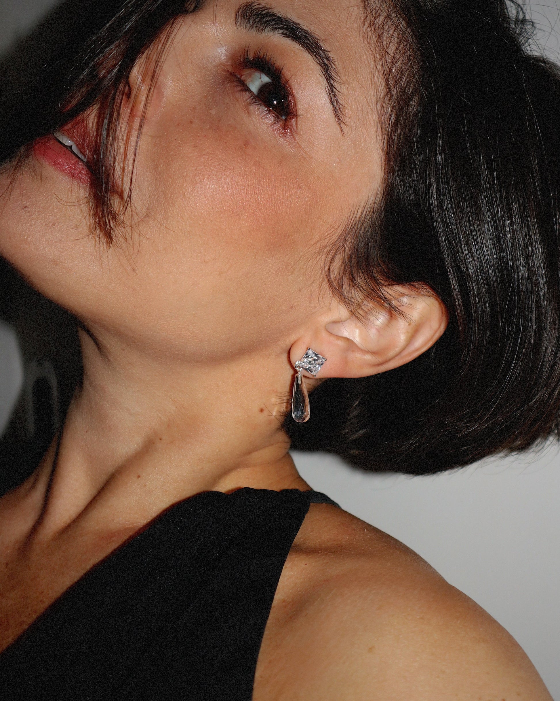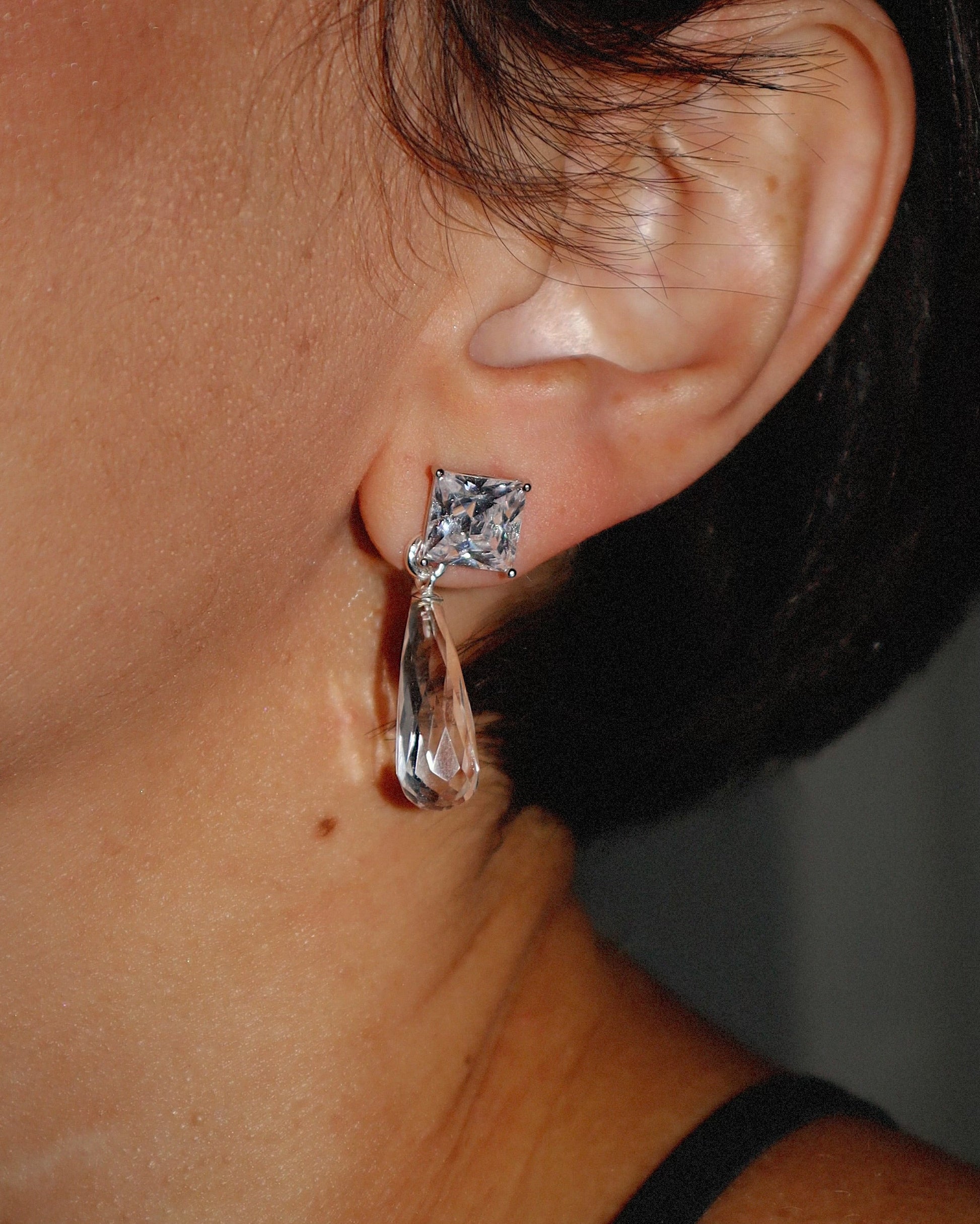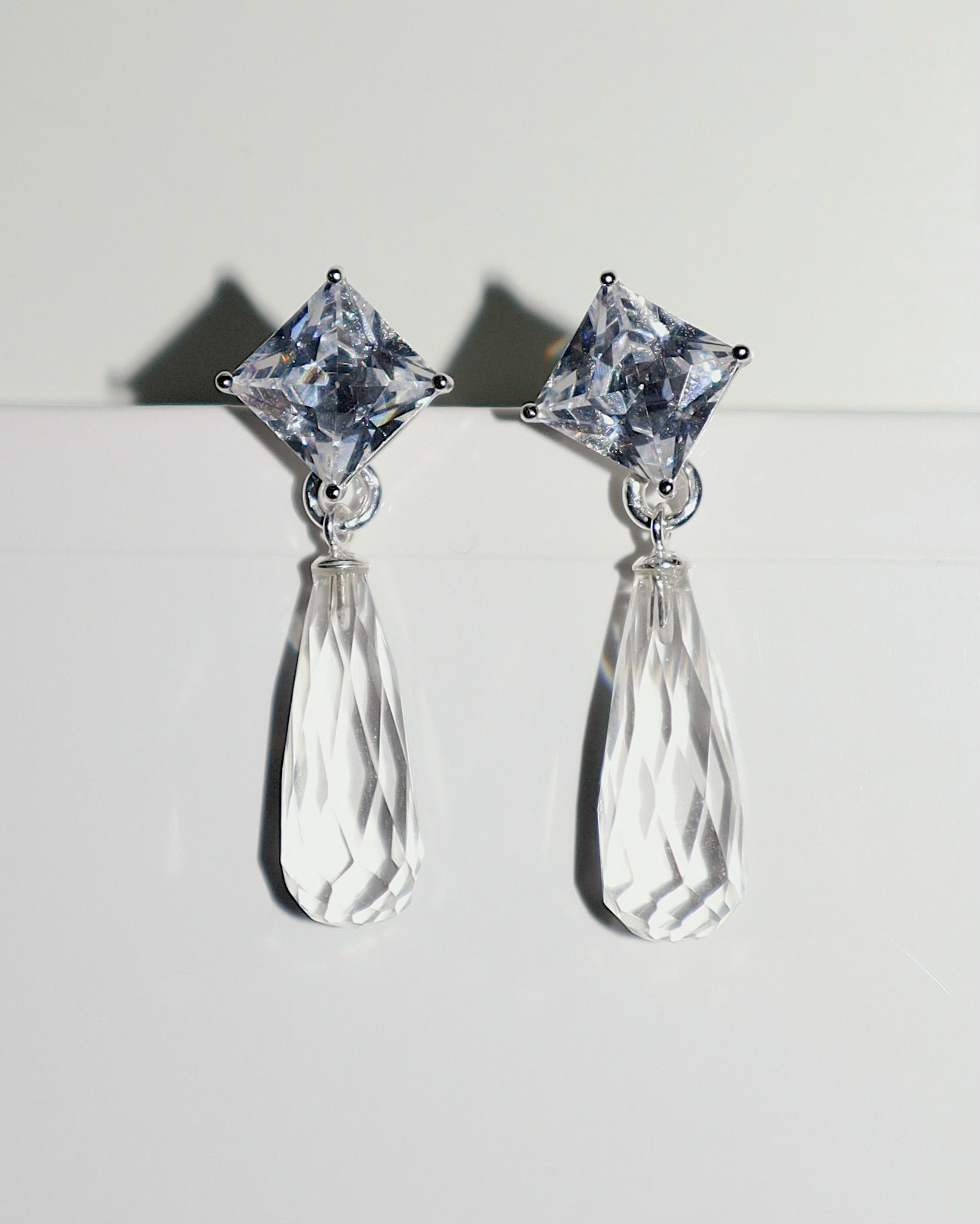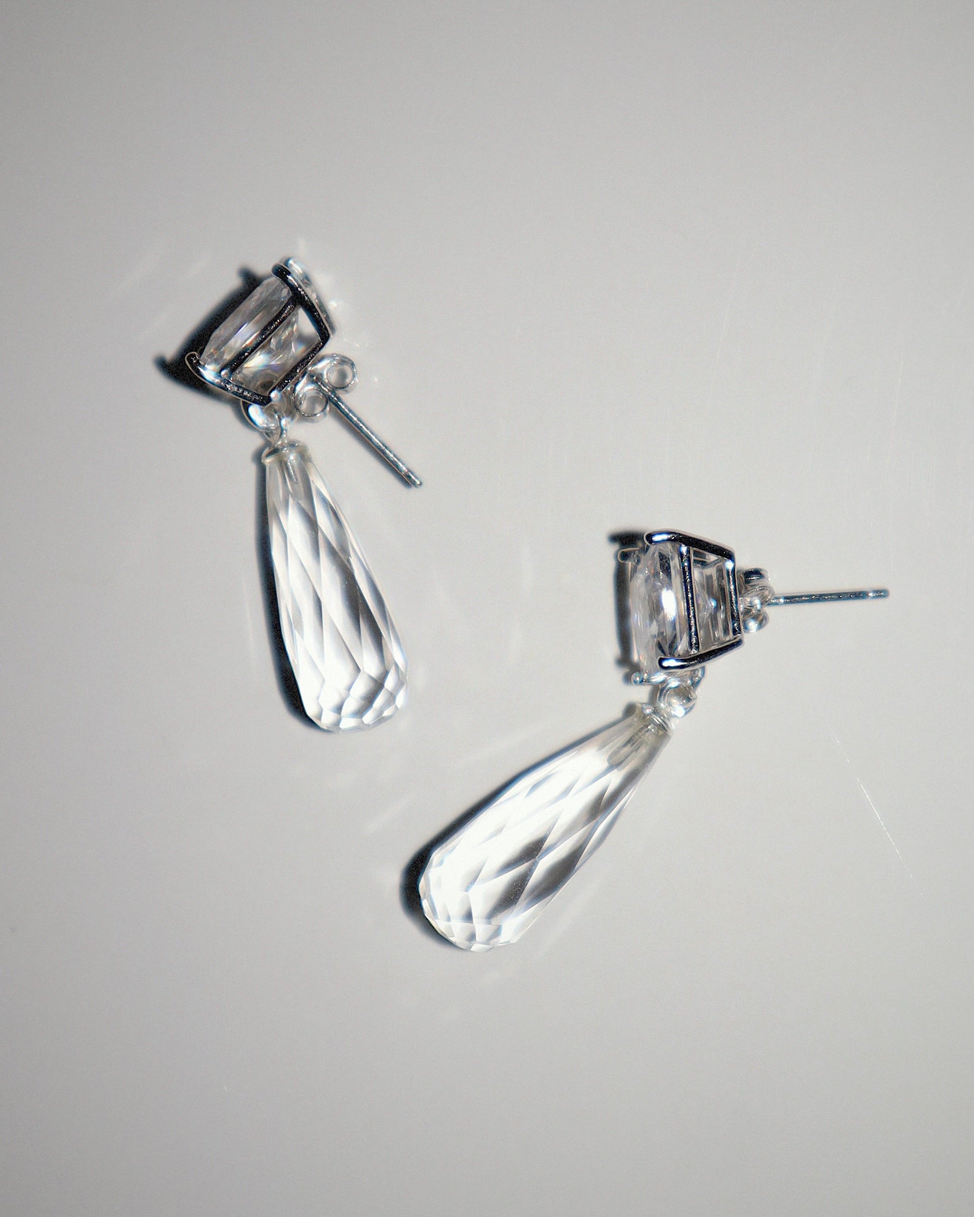 Faceted Brazilian rock crystal meets Swarovski brilliance in a timeless Briolet drop. Crafted in sterling silver and made in Toronto.