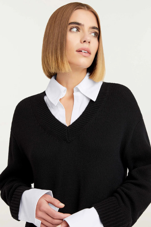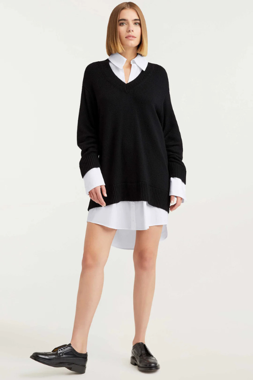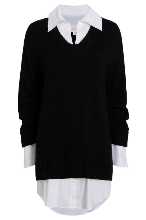 The Cinq à Sept Collar Santina Dress combines a cozy woven knit with a poplin underlay for versatile comfort. Featuring a collared neckline and long sleeves, this mini dress offers a timeless style perfect for the office or layering during changing seasons. Its mixed media detail adds subtle charm to your everyday wardrobe. Easy to pull on and effortlessly chic, it’s a reliable piece to keep you comfortable and polished all day.