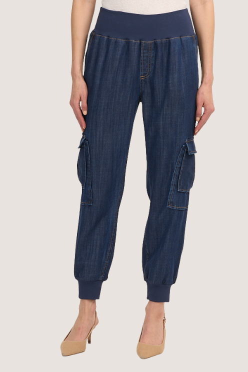 The beloved Giles Pant from Cinq à Sept gets a modern denim update. Designed with a relaxed jogger silhouette, these pants feature a wide pull-on waistband, ribbed cuffs, and utilitarian cargo pockets that blend function with street-style edge. Crafted from soft, easy-wear denim, they’re the perfect mix of casual comfort and elevated cool—ideal for pairing with everything from sneakers to heels.