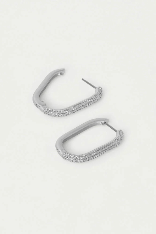 A balance of both feminine and masculine design, these pavé-embellished hoops are marked by an oval-like shape and an easy-to-fasten hinge closure.
