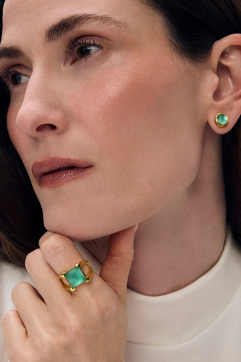 Featuring an everyday, stackable design and a cushion-cut Banyan Green gemstone, the Mini Plaza Ring is endlessly wearable with its easy-to-style silhouette.