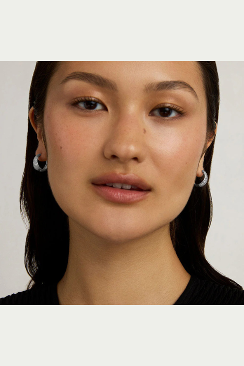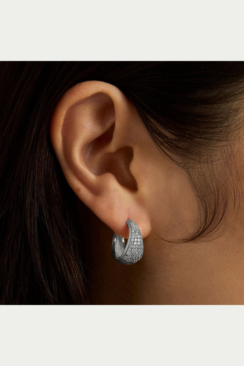 Reimagine your huggie rotation with the Margaux Pavé Huggie Hoops, a teardrop-shaped silhouette adorned with petit pavé stones.