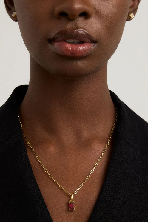 Add some colour to your necklace game with a baguette gemstone that represents your birth month (or mood!). Featuring a minimalist setting and a modern paperclip chain, it's a versatile piece with endless styling potential.