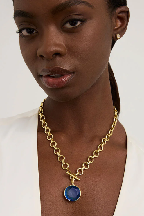 Add a playful twist to your jewelry collection with the Signature Collar Labradorite. Featuring a dazzling brilliant-cut labradorite suspended from a bold link chain, this necklace invites you to mix and match your style. Secure it with the iconic DD toggle or remove the gemstone charm to transform it into a chic lariat. Wear it front to back for multiple show-stopping looks that are as fun and versatile as you are.