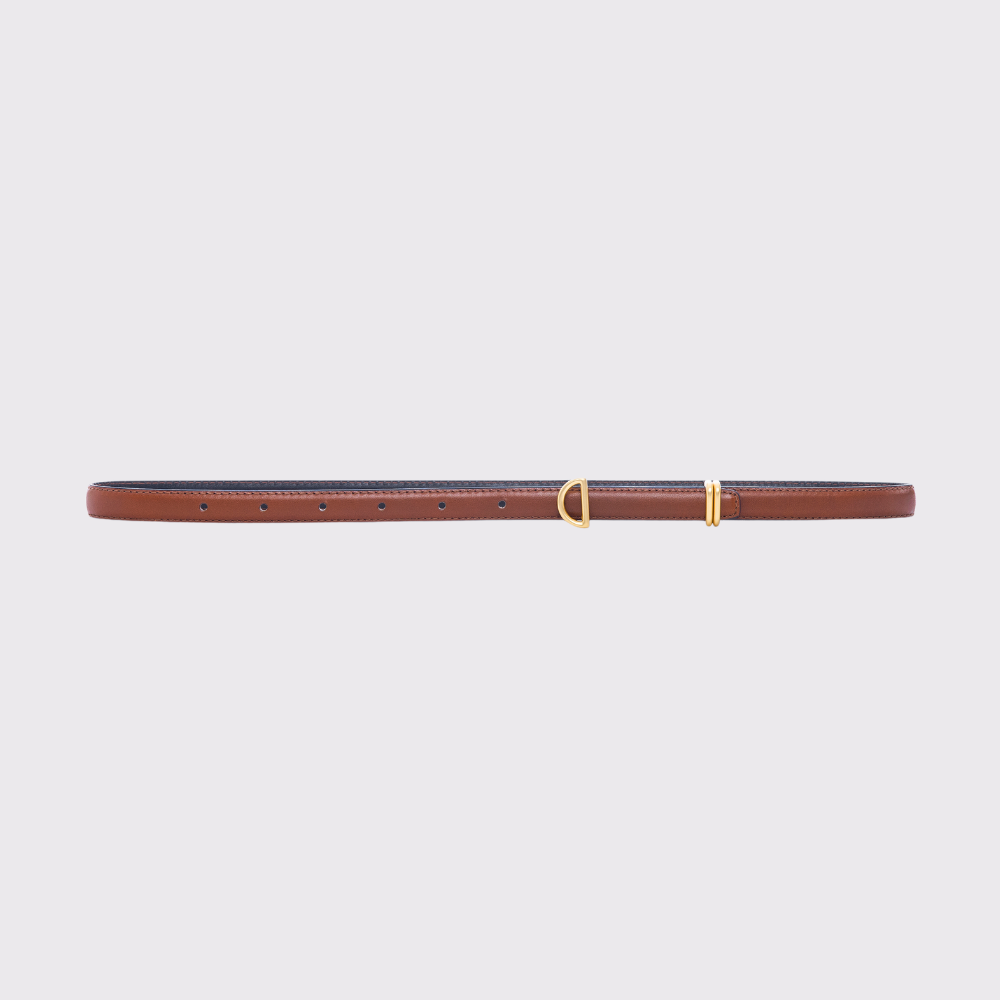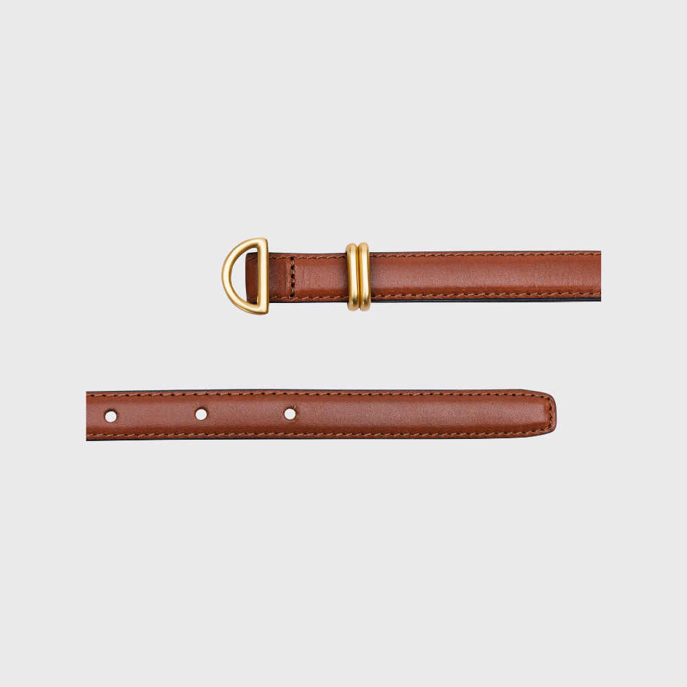 Wrap your waist in luxury with the Frame Petit Crescent Belt in Camel. Crafted from genuine leather, this sleek and sophisticated belt features a stunning gold crescent buckle and hardware. Elevate any outfit and showcase your style with this timeless accessory.