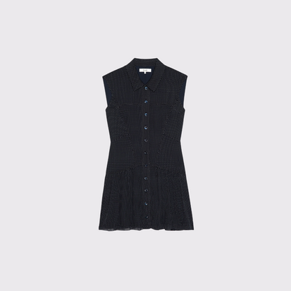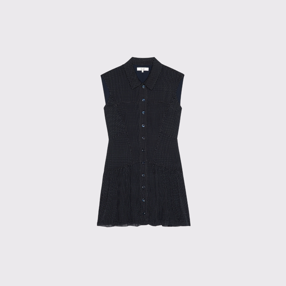 Effortless by design. Cut from pure silk with a polka dot print, this sleeveless button-front dress is light, fluid, and easy to wear. Fitted through the bodice with a softly flared hem—it’s the kind of piece that does the work for you.