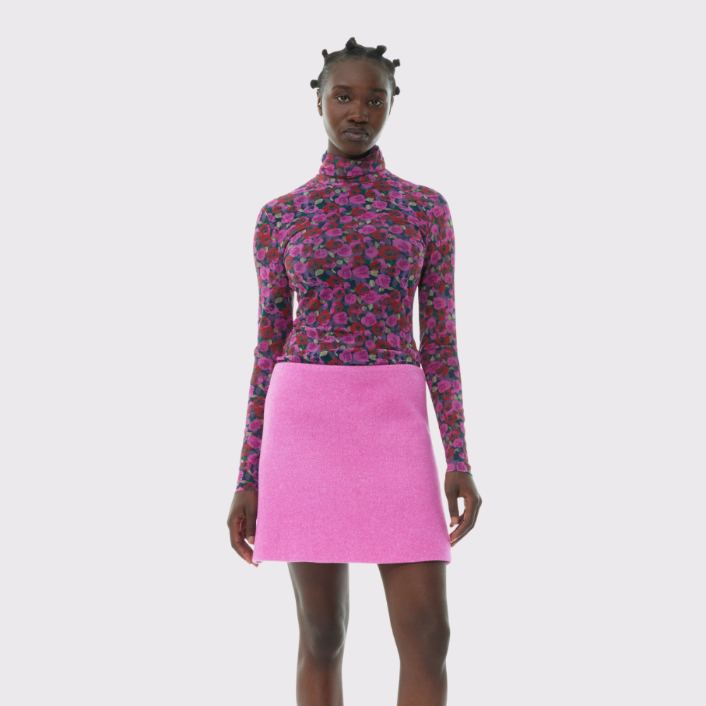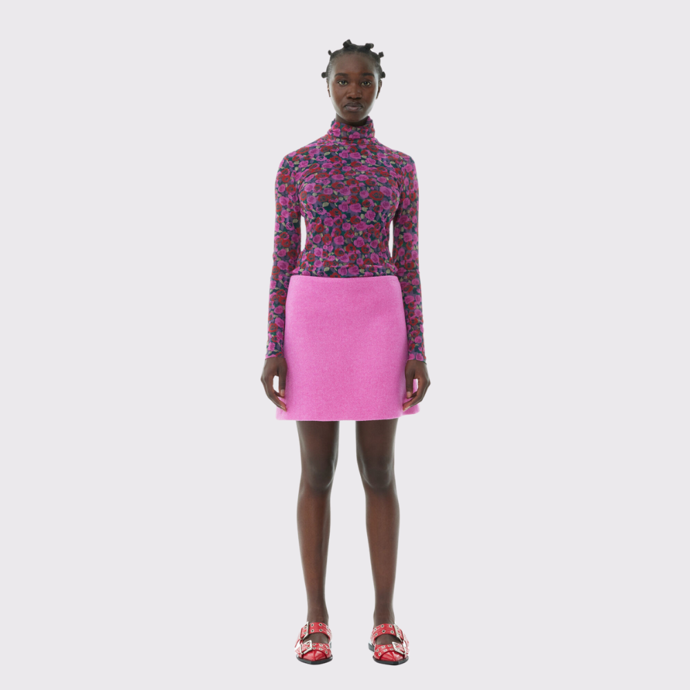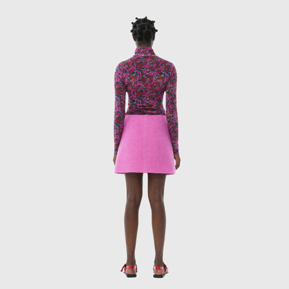 Indulge in luxury and elevate your style with the Ganni Twill Wool Mini Skirt. Crafted from a hot pink wool material, this mini skirt exudes sophistication and exclusivity. Perfect for any occasion, it's a must-have for any fashion-forward individual seeking a touch of elegance in their wardrobe.