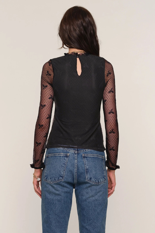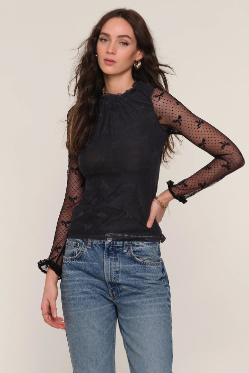 The Woodson Top features a lovely stretch mesh fabric with a crew neckline and a slim silhouette. It’s detailed with soft ruffles around the neck and cuffs, and the body comes fully lined for added comfort. This top combines stretch and style effortlessly.