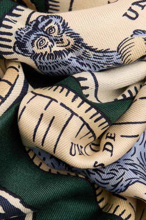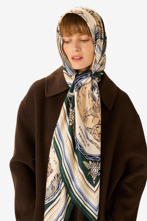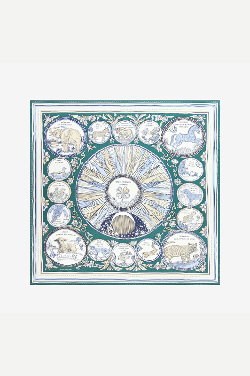 Symbolic and refined, the Chance Inoui Square celebrates artistry and optimism through a detailed zodiac-inspired motif. Framed in rich green with accents of cream, blue, and gold, this piece brings a touch of celestial charm to any look. Crafted in a silk-modal blend, it offers a beautifully soft, lightweight drape — effortlessly blending everyday wearability with timeless elegance.
