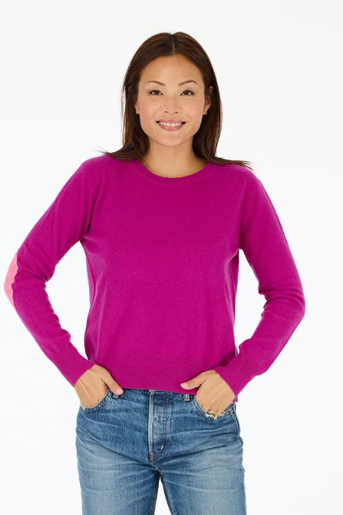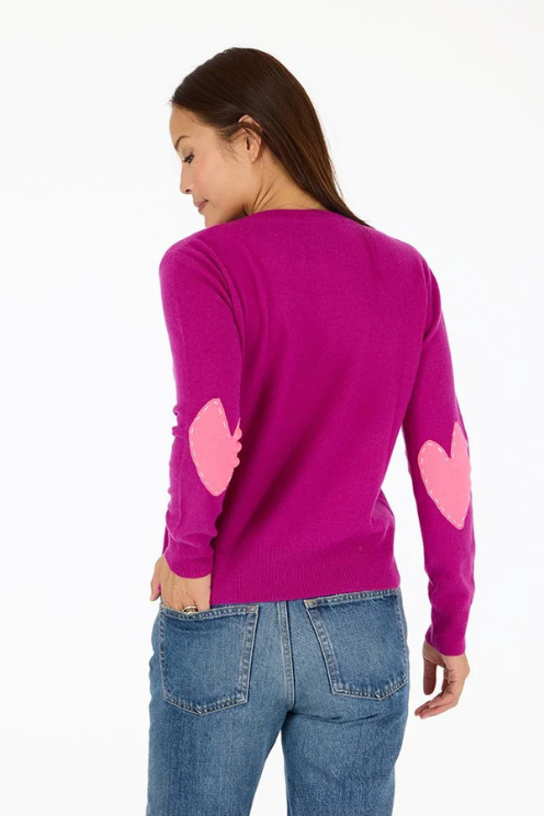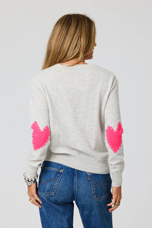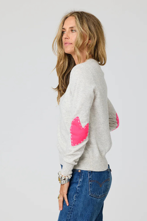 Embrace fall with our Elbow Heart Patchwork Pullover, now in fresh new colors you’ll adore. Made from 100% lightweight cashmere, it’s irresistibly soft and just right for layering or wearing solo. The playful imperfect heart patches on the elbows add a charming twist to the classic crewneck design. At 22" body length on a size small, this cozy pullover brings warmth and love to every outfit.