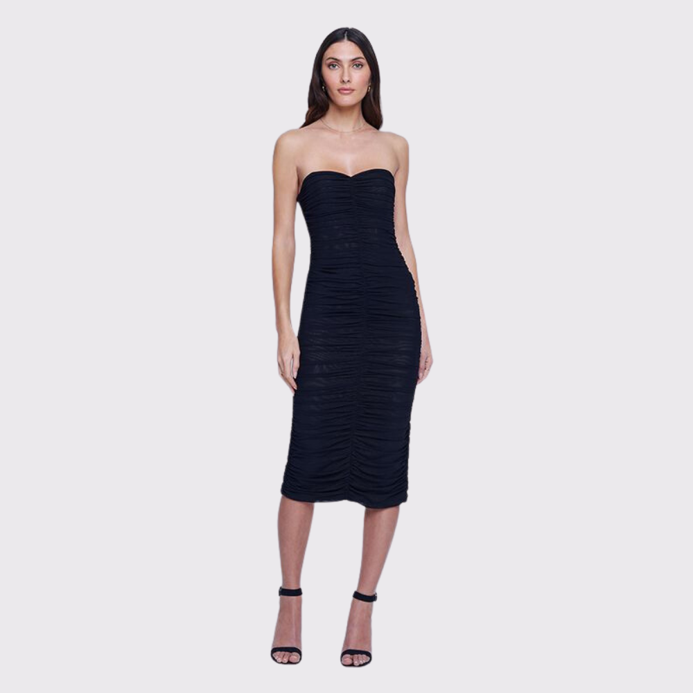 Look stunning in the alluring Caprice dress! Its gorgeous allover ruching offers the perfect fit, while the sweetheart neckline and back slit create a timelessly elegant look. A hidden side zip closure ensures a secure fit, while the fully-lined design keeps its shape.