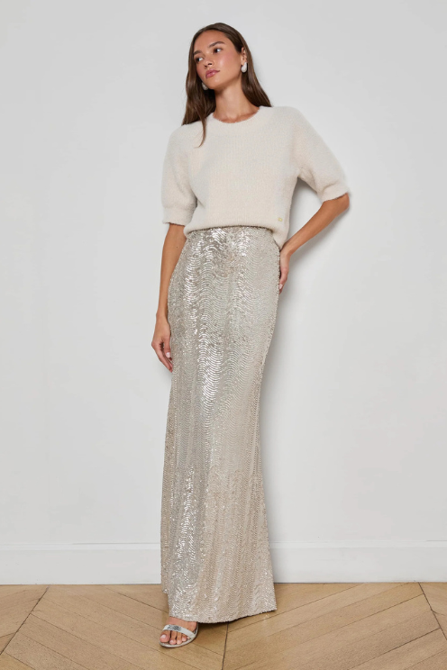 The Zeta Sequin Maxi Skirt blends cozy elegance with timeless style. Crafted on a stretch knit base, it offers comfortable movement while the soft swirl of tonal sequins adds a subtle sparkle. Fully lined with an invisible back zip, this skirt feels as good as it looks—perfect for dressing up or down throughout the year.