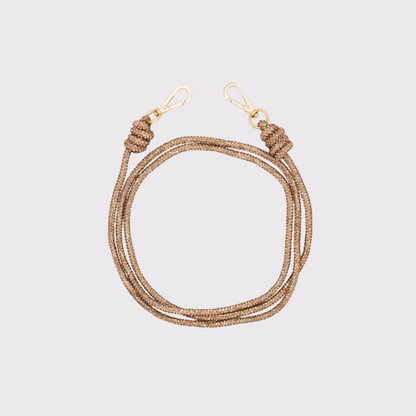 The cord is 124 cm long (hooks included) and can be worn as a strap or necklace. Its slim thickness of 4mm gives it an elegant and refined look.