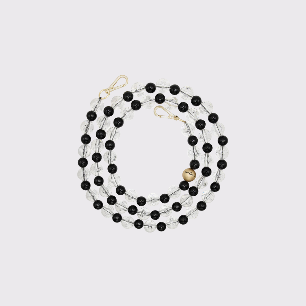 Made in Italy, the PAULA chain is made of glitter beads in high-quality black-silver resin. It turns your mobile phone into a real fashion accessory.