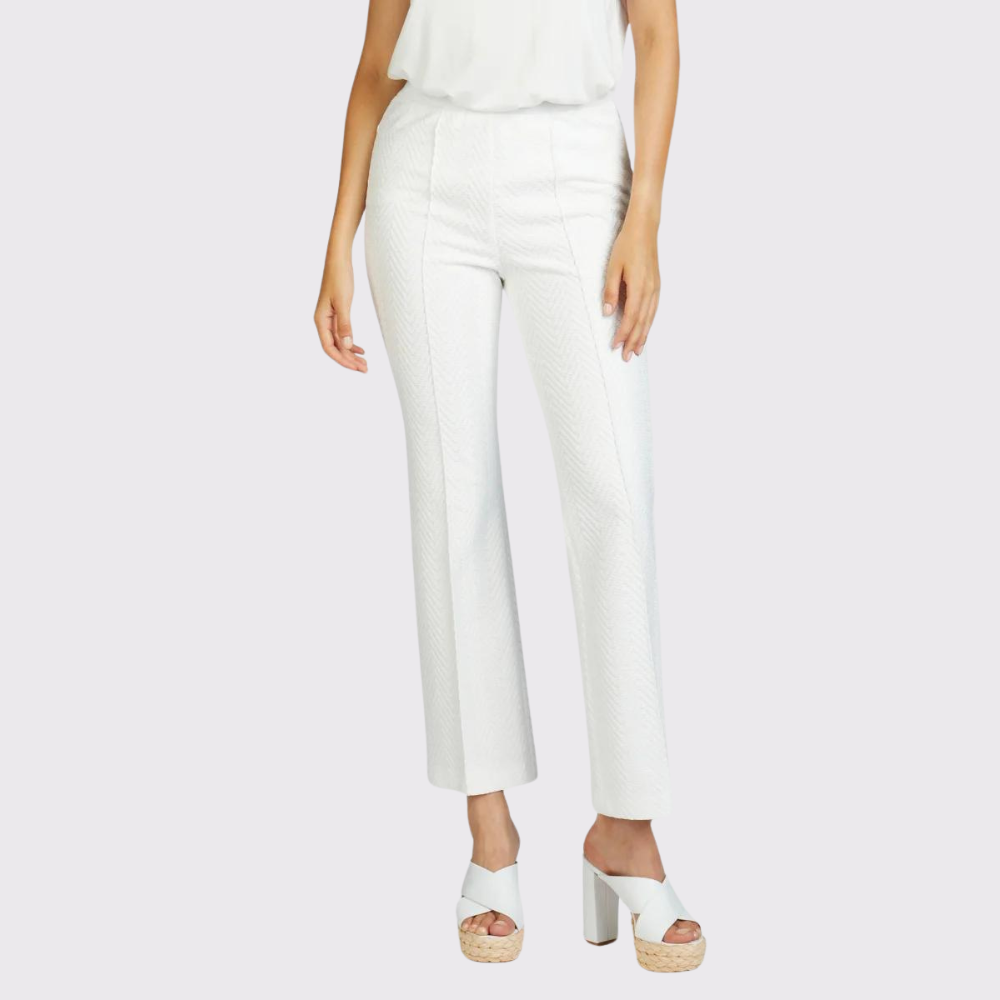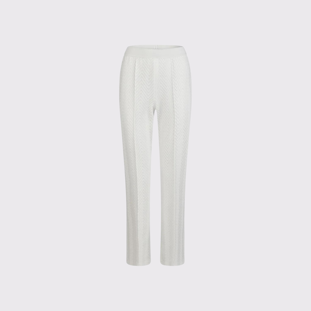 Elevate your wardrobe with our Marc Aurel Jagged Pattern Trousers. Made from bonded jagged lace and cotton, these trousers feature a unique flared hem and quilted piping for a structured look. Complete with elasticated cuffs, they are a must-have for any fashionista. Opt for sophistication and exclusivity with these premium trousers.