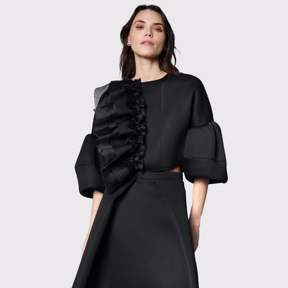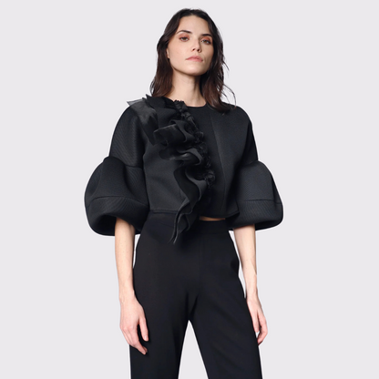 Introducing the Ismal cropped jacket, crafted from luxurious Honeycombed Jersey. The gathered details at the front add a touch of sophistication, while the voluminous balloon sleeves elevate this jacket to statement piece status. Perfect for adding a touch of elegance to any outfit.