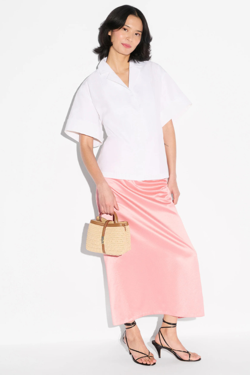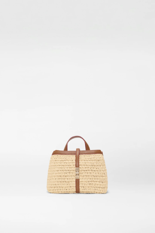 A compact crochet bag with refined details, finished with Italian leather trim and light gold hardware. Designed for everyday ease with a top handle and two detachable straps for versatile wear.