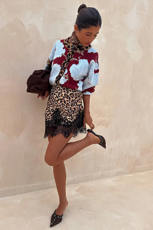 Leopard Lace Midi Skirt