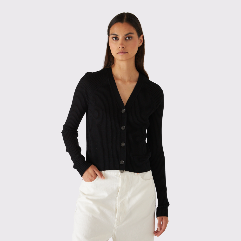 Introducing the Patrick Assaraf Cotton Cupro Rib Cardigan. This lightweight, seamless, and slimming cardigan is perfect for layering and warmer weather. Made with luxurious cotton cupro, it's an essential basic for any wardrobe. Also available in white.