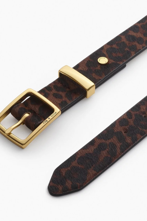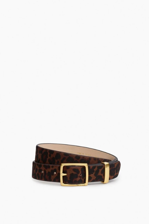 This Rag & Bone belt offers a bold twist on classic menswear style with its leopard-print calf hair design. Crafted with attention to detail, it features a sleek metal keeper for a polished finish. Available in multiple sizes, this 1.18-inch wide belt combines durable leather with standout style, perfect for adding a distinctive edge to your outfit.
