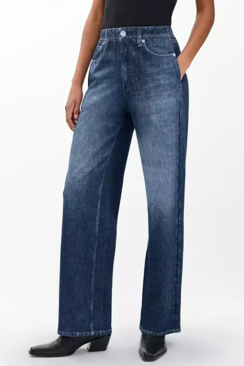 Experience the comfort of cotton terry cloth with the stylish look of denim in these wide-leg pants. Using Miramar’s innovative printing technique, the fabric is digitally printed to mimic authentic denim details while staying ultra-soft inside. The mid-rise design features a pull-on elastic waistband and side seam pockets, blending ease and practicality for everyday wear. Perfect for those seeking casual comfort without sacrificing style.