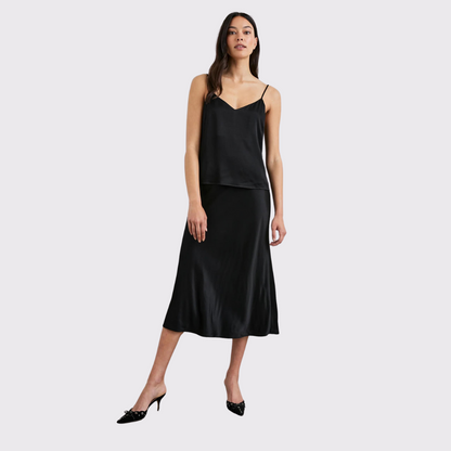 Made from super smooth lightweight crepe, the Paola is a flattering luxe tank top that looks amazing on its own and is great for layering. This tank top comes in a classic fit and features thin adjustable shoulder straps.