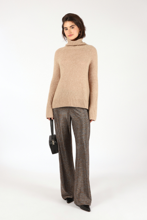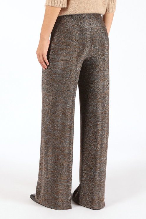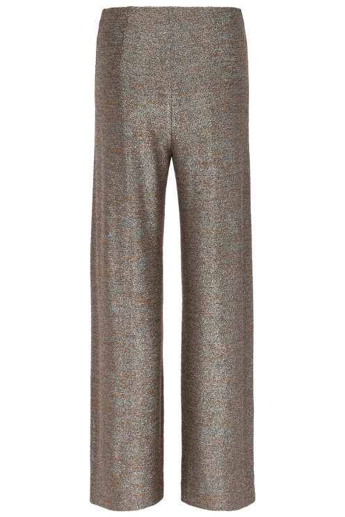 Transform your wardrobe with Seductive Kimberly - Mixed Metals! These high waist pull on pants offer ultimate comfort with a loose and wide leg design. In stunning mixed metal glitter, featuring silver, gold, and copper tones, this versatile piece can be dressed up or down for any occasion. Don't miss out on this captivating addition to your wardrobe!