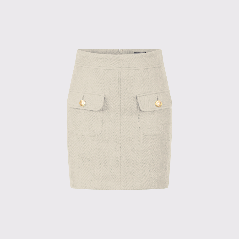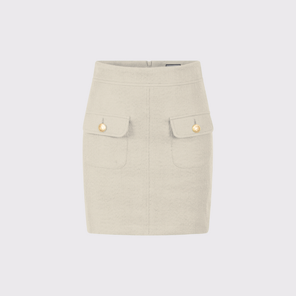 Introducing the Paris Summer Tweed Skirt by Seductive - a must-have for your wardrobe this season. This cream mini skirt with front pocket and gold button detail exudes sophistication and elegance. Perfect for both day and night, this skirt is also available in navy. Elevate your style with this chic and versatile piece.