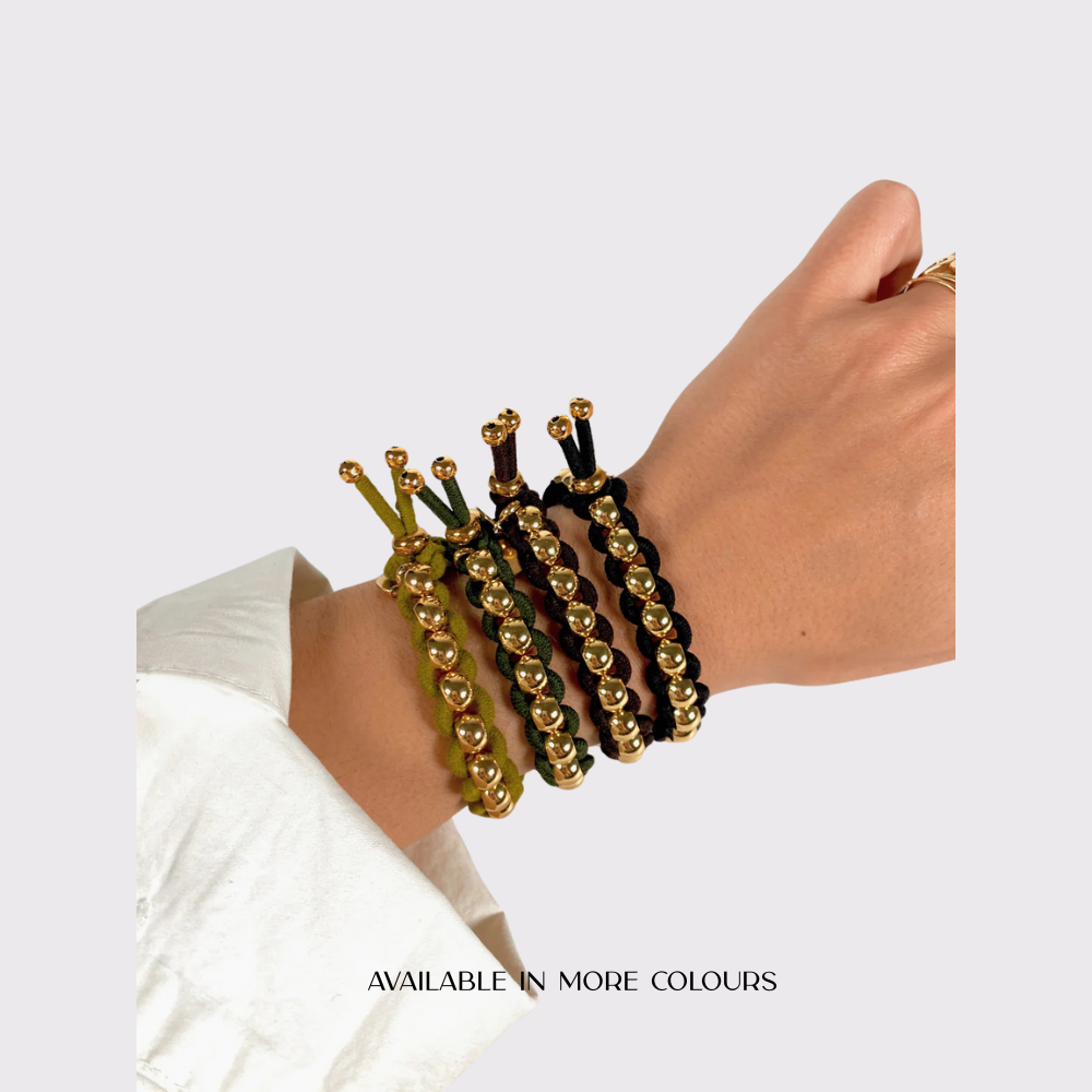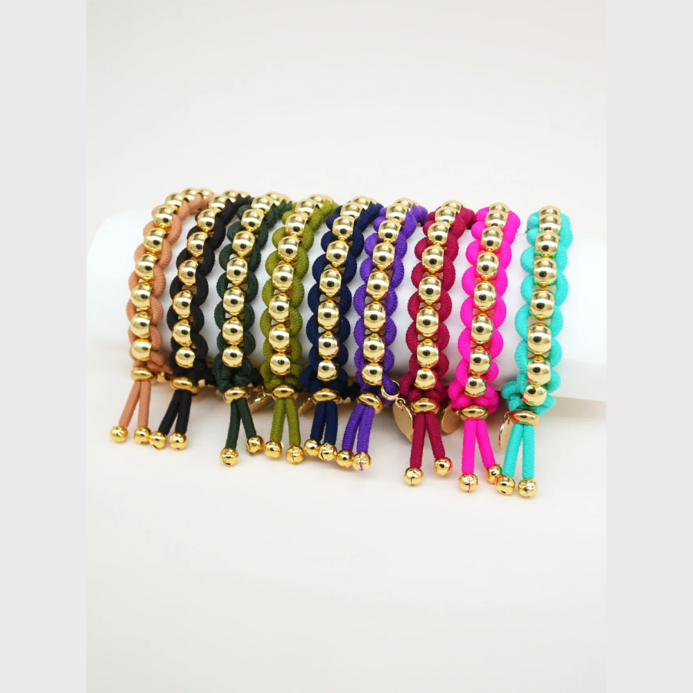 Scrunchie is Back - Colored Elastic & Gold Bead Bracelet