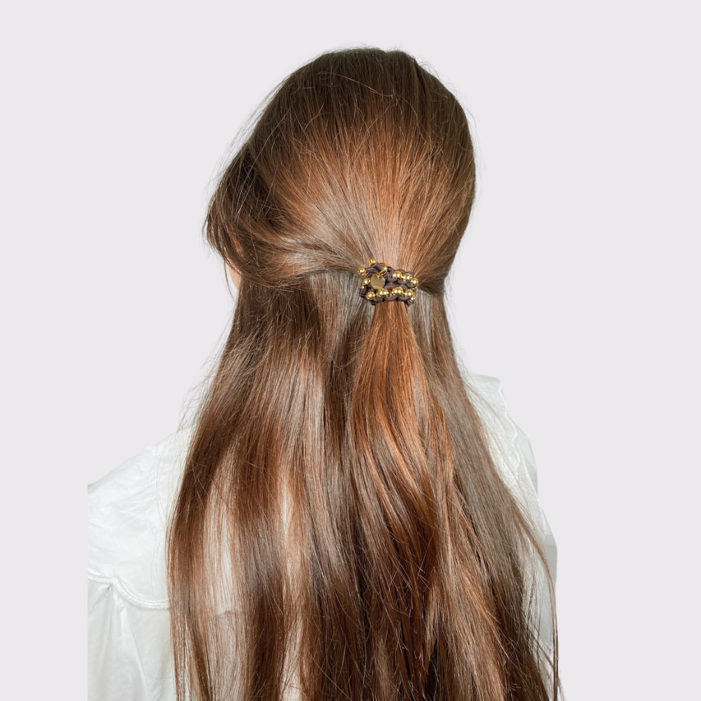 Made in France with high-quality, ultra-resistant elastic, this dainty bracelet can be worn in a variety of ways: around the wrist like a bracelet or in your hair to hold your different hairstyles. The stainless steel beads ensure color retention over time.