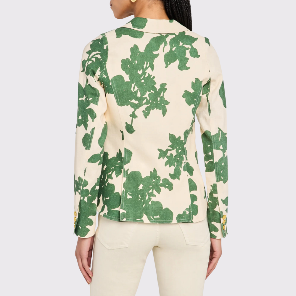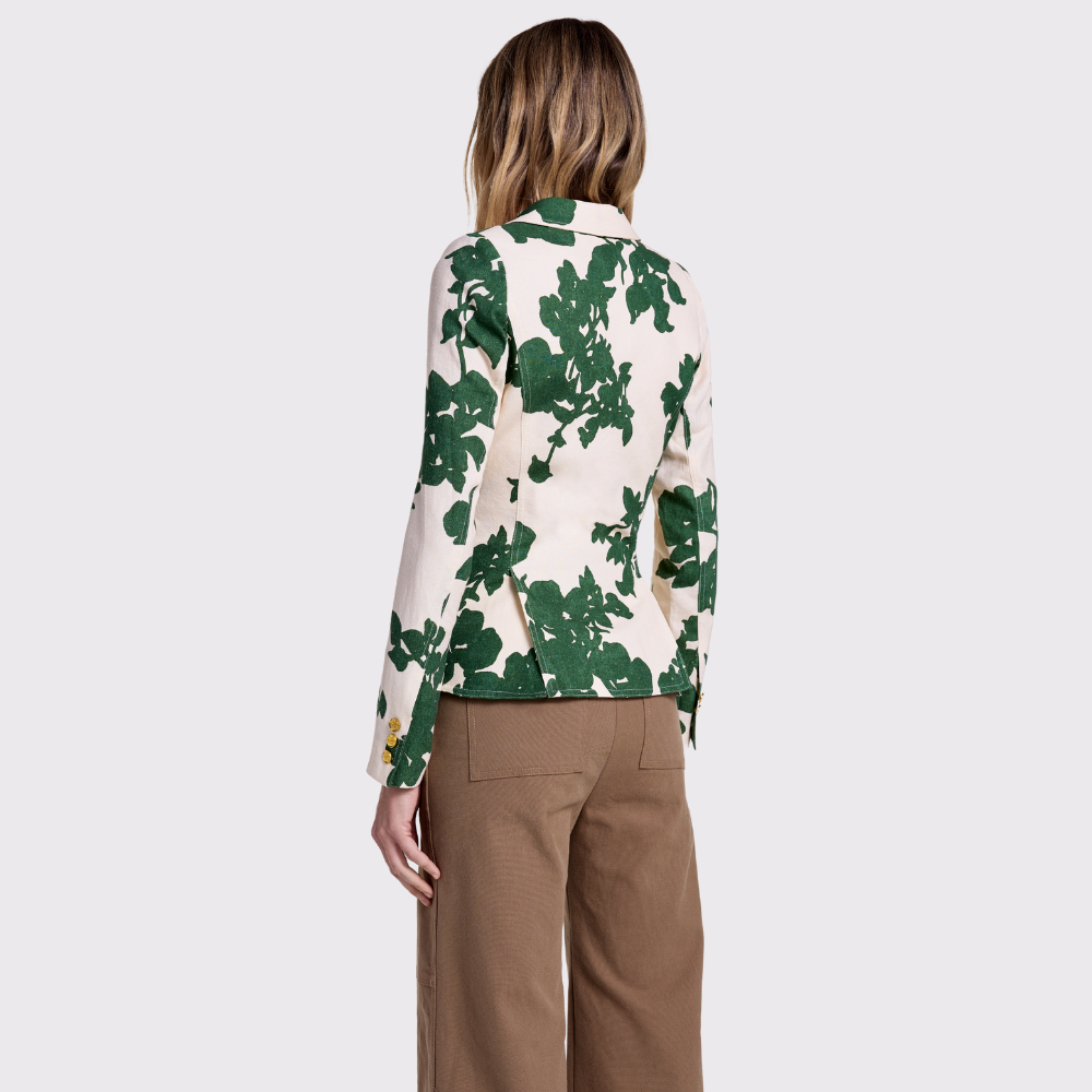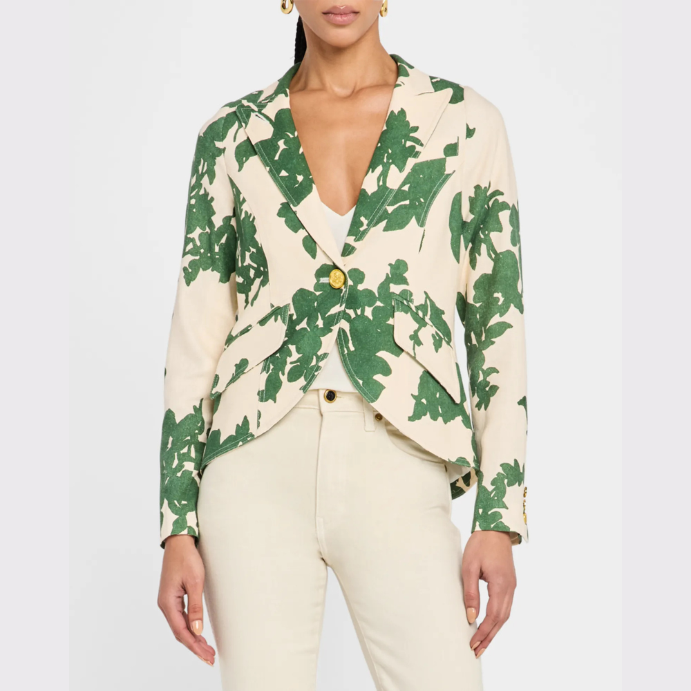 Step up your style game with the Smythe Floral One Button Blazer, designed to flatter your figure with a fun, feminine flair. Made from a breezy linen-viscose mix, it boasts a chic 22" length, sharp peak lapels, and a sleek single-button front that hugs your shape just right. Playful details like buttoned cuffs, hip flap pockets, and a trendy cut-away hem add personality. Proudly made in Canada, this floral blazer is your go-to for turning heads at work or your next outing.