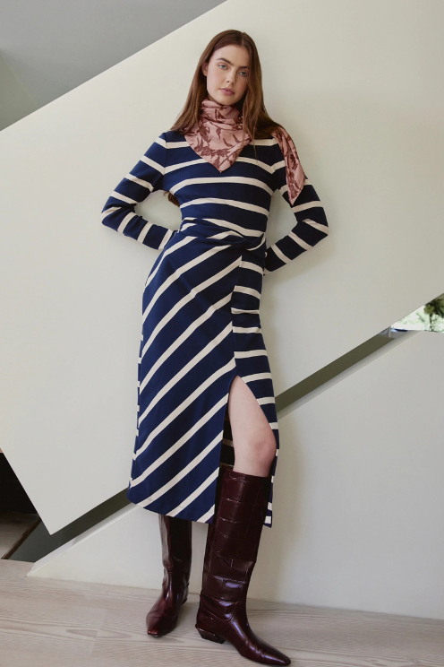 An update to our best-selling Brinkley Pullover and an instant classic, the Brindy Dress is fresh for fall in the organic cotton stripe you love in our signature figure-grazing dress silhouette.