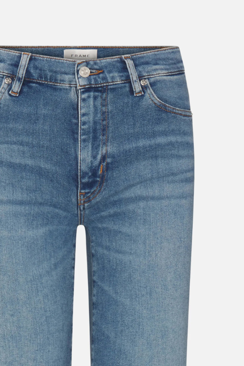 Relax in your next must-have stretch jean. Featuring a true mid-rise waist, ankle-length inseam and slim wide leg, the Mellow is emblematic of the next generation of FRAME.