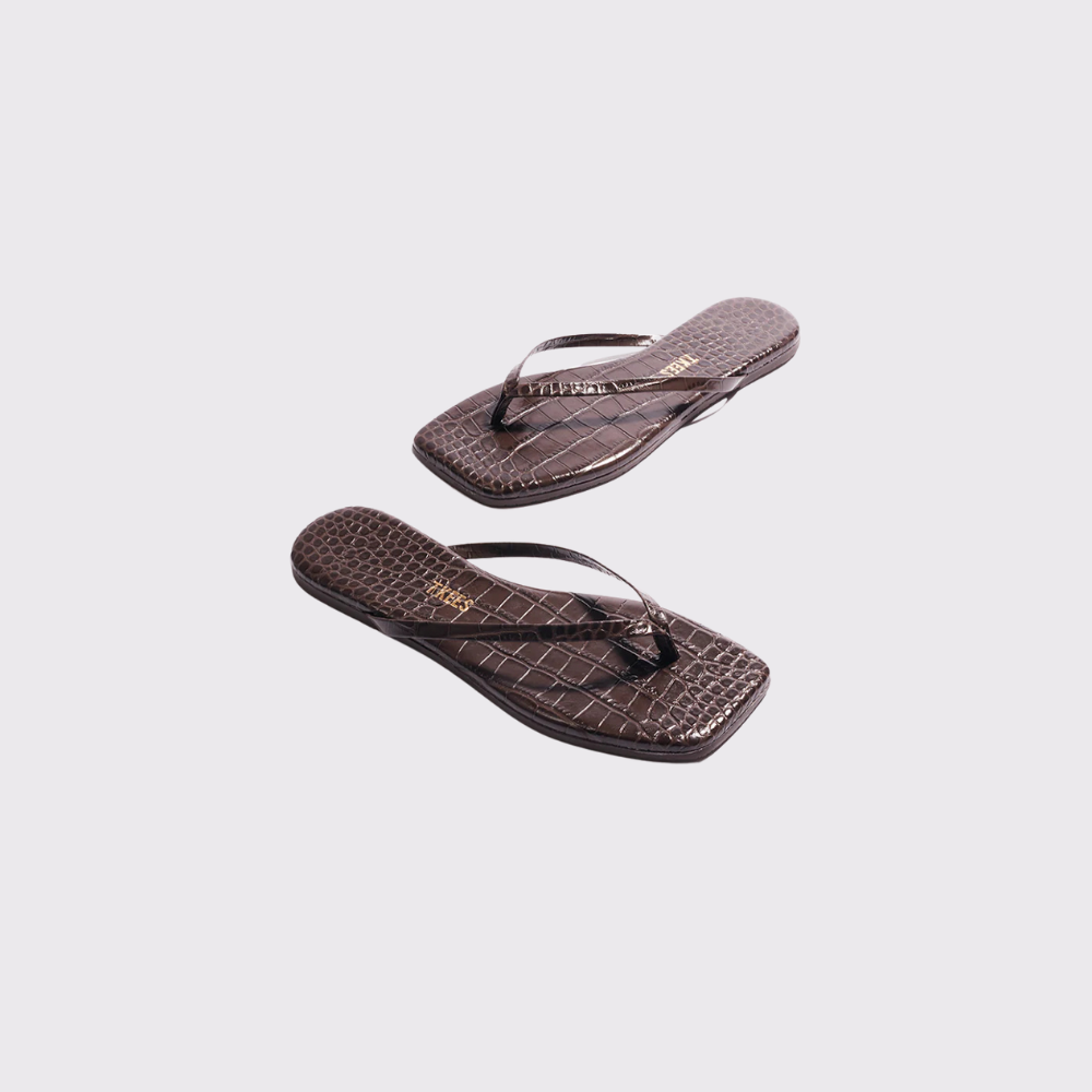 A classic crocodile embossed leather combined with our modern square toe silhouette.